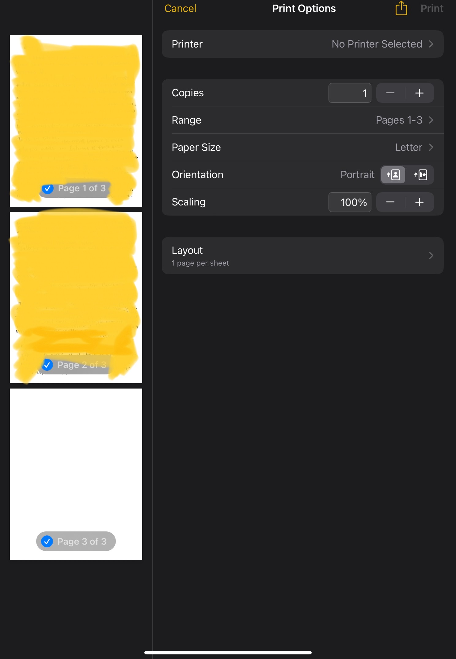 I love writing on my mini, but when I try to print out from my MacAir it won’t allow me to print out all 3 pages. Am I doing something wrong? I believe this has been a problem for some time, now I remember why I bought the writing apps (although I love the apple pens). At the very least, I am hoping to bring awareness.