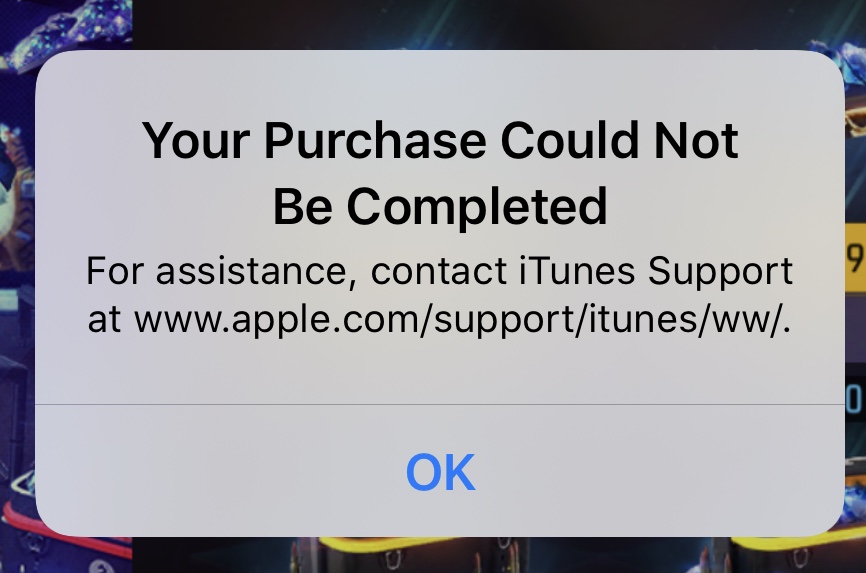 I paid to my Apple ID with a gift card and it saying my in app purchase could not be completed and I have the necessary balance for the transaction