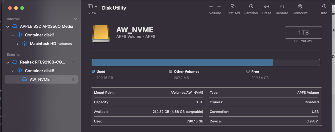 Monterey 12.6.1, Using 1 TB NVME on a 256GB base M1 Mini.