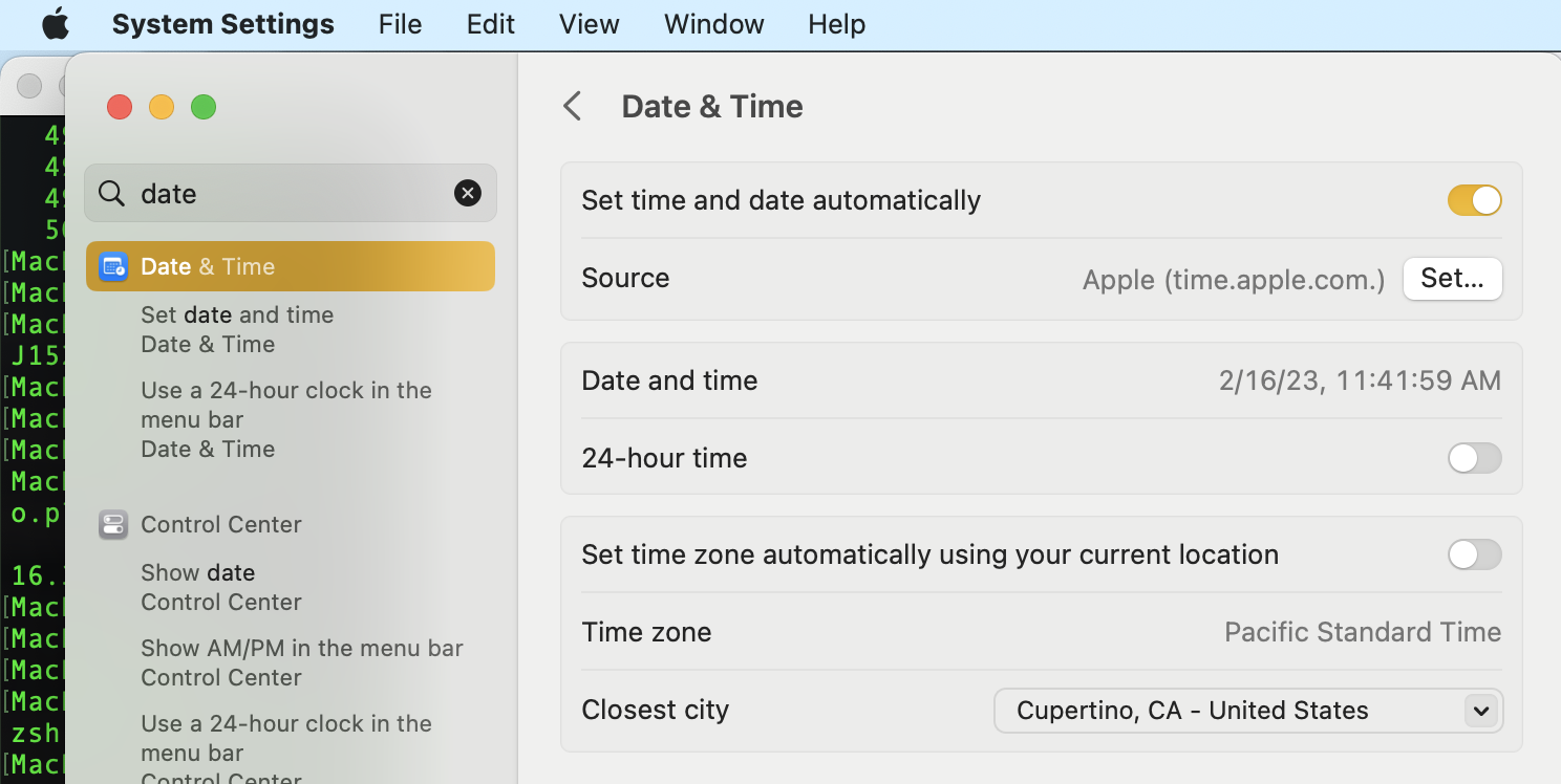 west coast is Cupertino time from Terminal this reads America/ Los_Angeles (?)