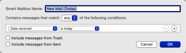 I have a smart mailbox in Apple Mail - New Mail (Today).