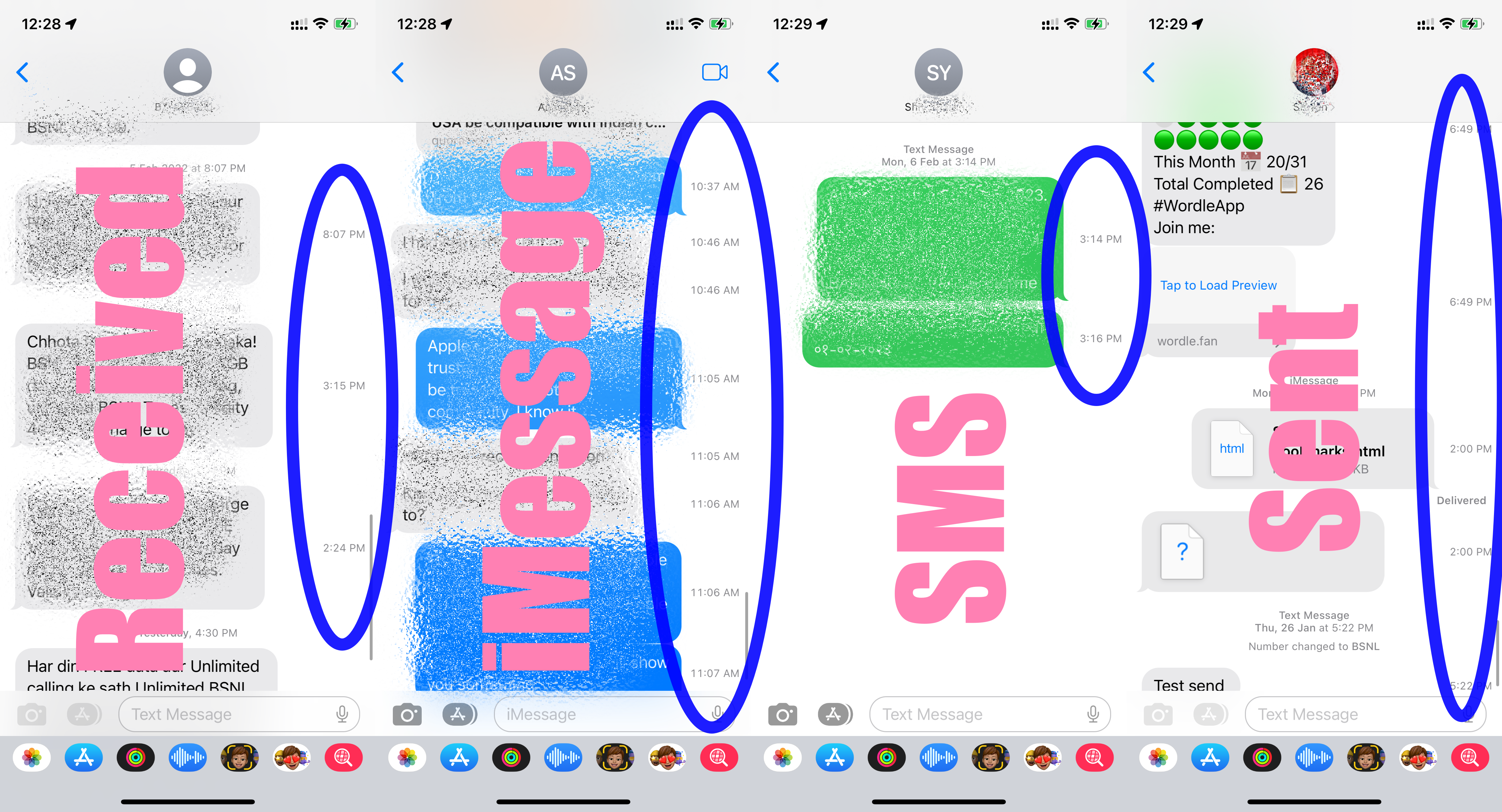 I have all messages (Sent and Received) with a Time Stamp which can be seen when you swipe left on the message.