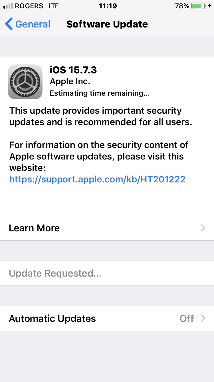 Then post a screen shot of the result you get when connected to WiFi. If it is, in fact, identical, and it takes more than 5 or 10 minutes from the time it says 'update requested' until it starts downloading it, then try it while connected to a different WiFi network.