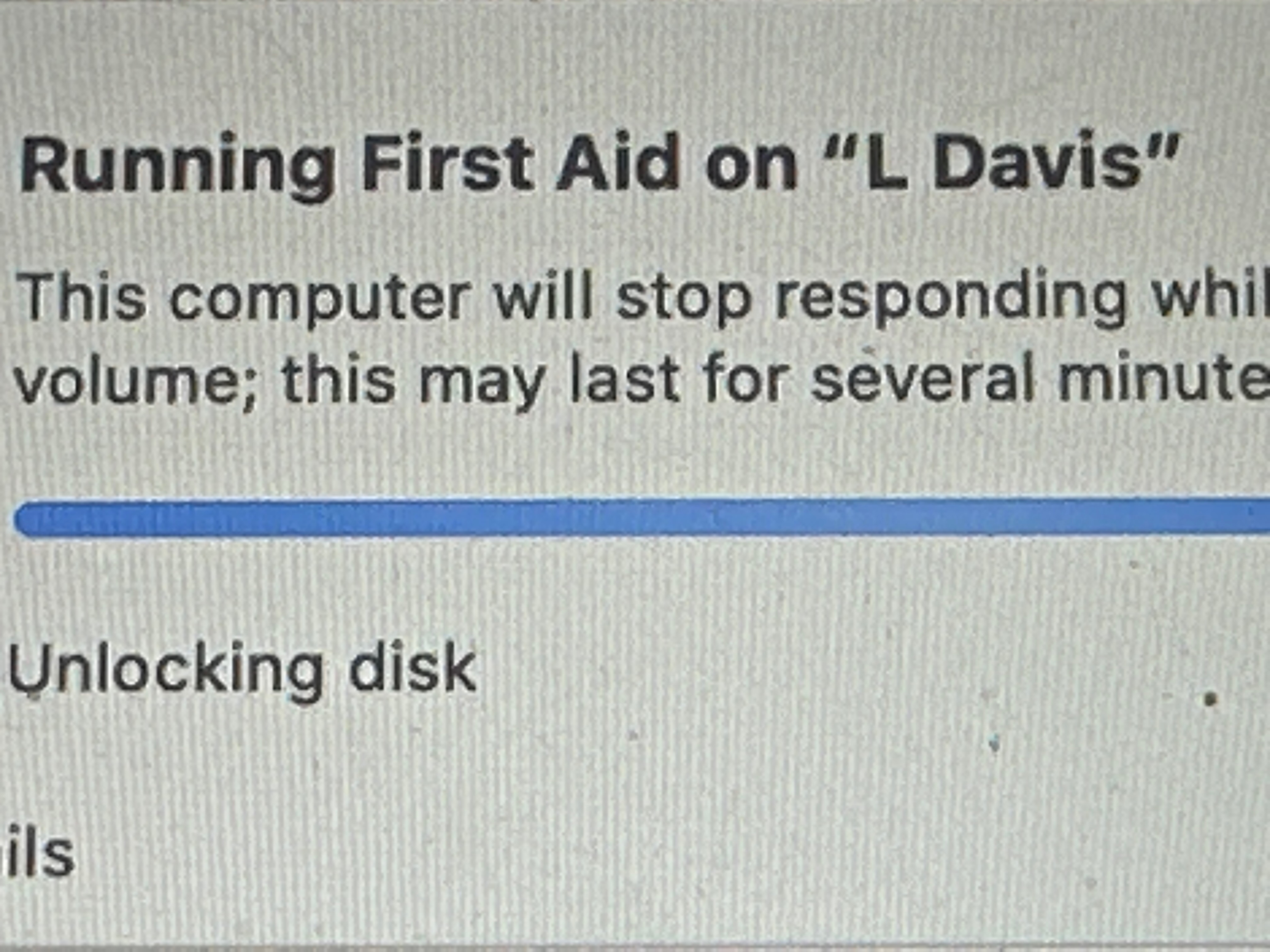 Thank you for reaching out to Apple Support Communities, and we'll be happy to help in any way we can. We understand you're having issues with your mac stuck unlocking a disk. We recommend restarting your Mac and trying again. This link goes over ways you can shut down your Mac: Shut down or restart your Mac - Apple Support