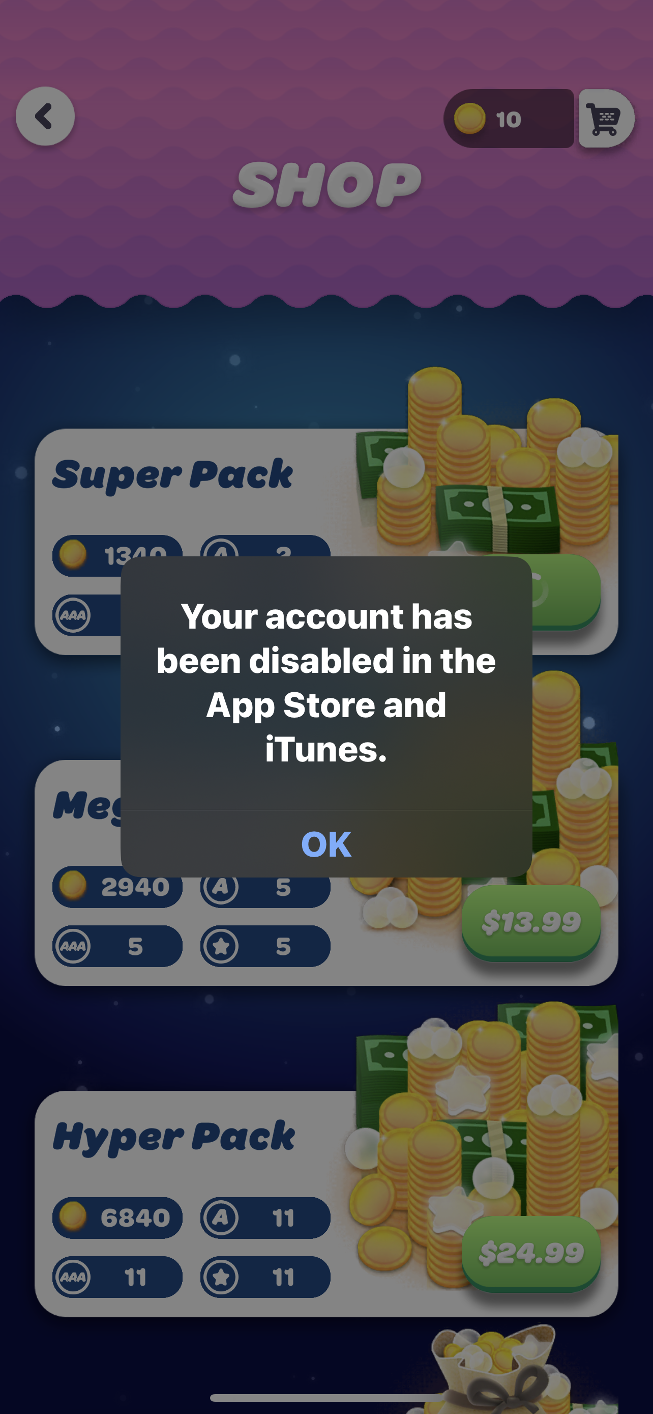 My account has been disabled in the app and iTunes Store