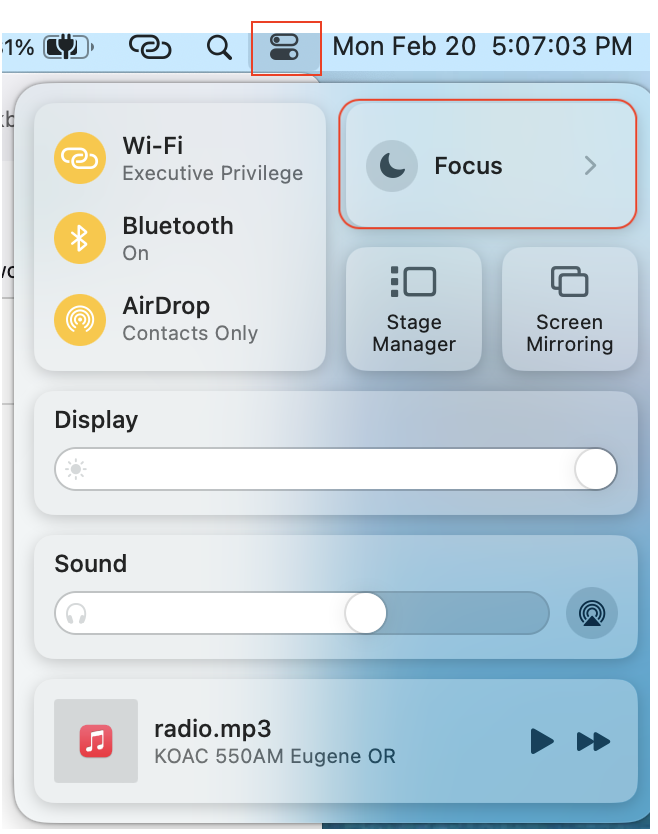 I have Ventura on a MacBook Air and my Do Not Disturb is always on. How do I turn it off? Neither "Focus" or "Do Not Disturb" is listed in Notifications with my other apps in Settings.