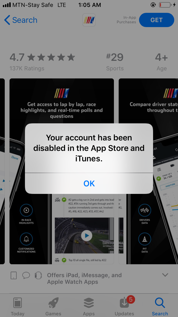 Account disable from App Store née iTunes