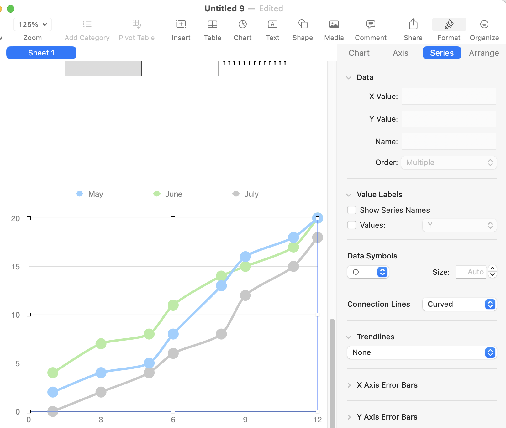 I have two sets of values and I need to do a line (curve) graph of them in Numbers. Meaning I need one set to be the X axis and the other set being the Y axis. I can’t figure out a way to do that. Can someone help?