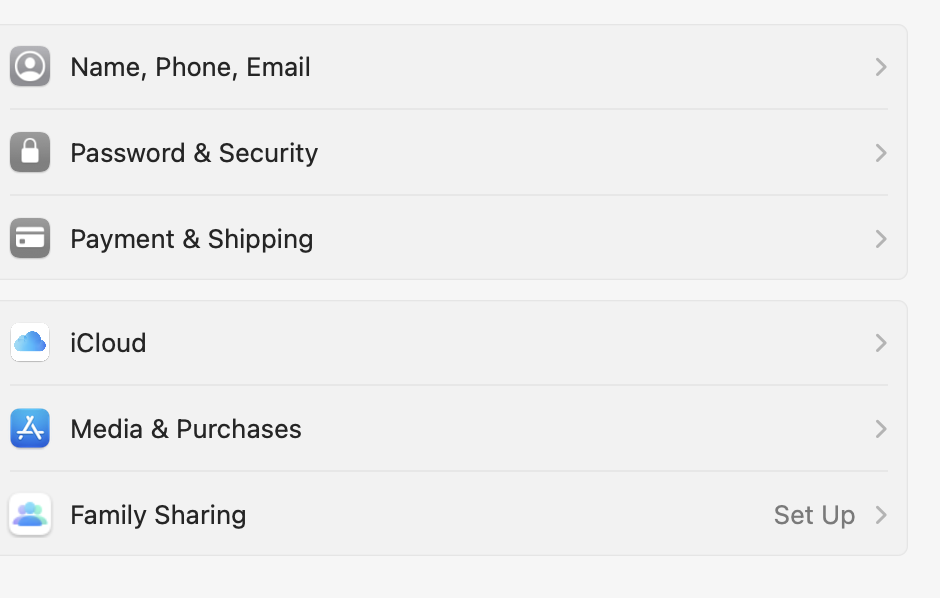 macOS Ventura "Family" app persistent store service log entries (sandbox)