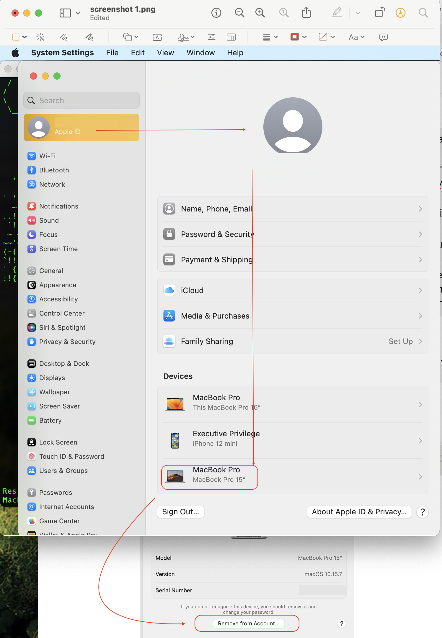 How do I exit this loop? How do I tell Apple I don't want a former device, don't have the password for it, and don't have physical access to the machine? How do I disassociate that machine from my account when Apple isn't even consistent about the association?