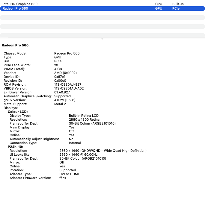 It sounds like you are converging on, "my built-in is not showing as large as it says it should be and the specs say it should be." And displays preferences supports the assertion that the built-in is WAY smaller by showing a graphic way smaller than expected.