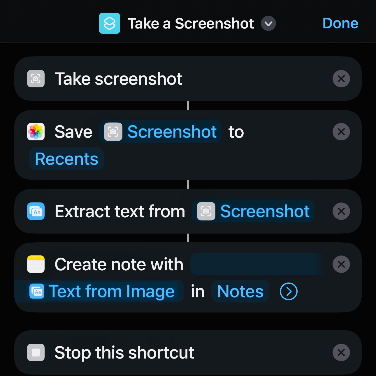 iPhone, shortcut action take a screenshot
