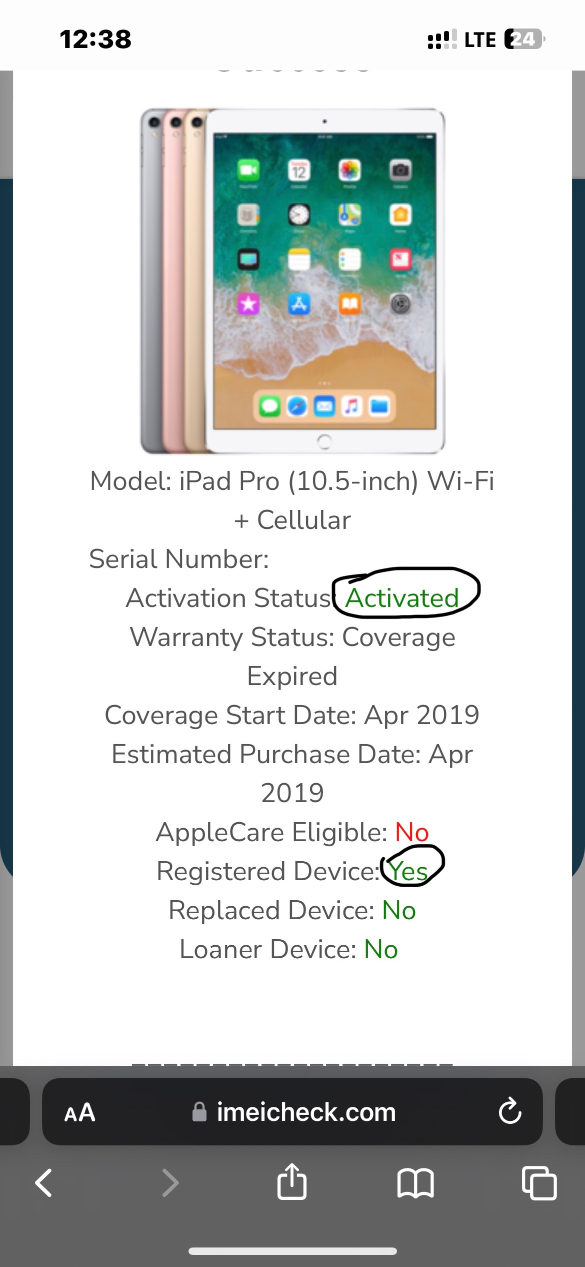 hi I checked the serial number on my iPad Pro 10.5 and it says it’s activated and registered what does that mean?