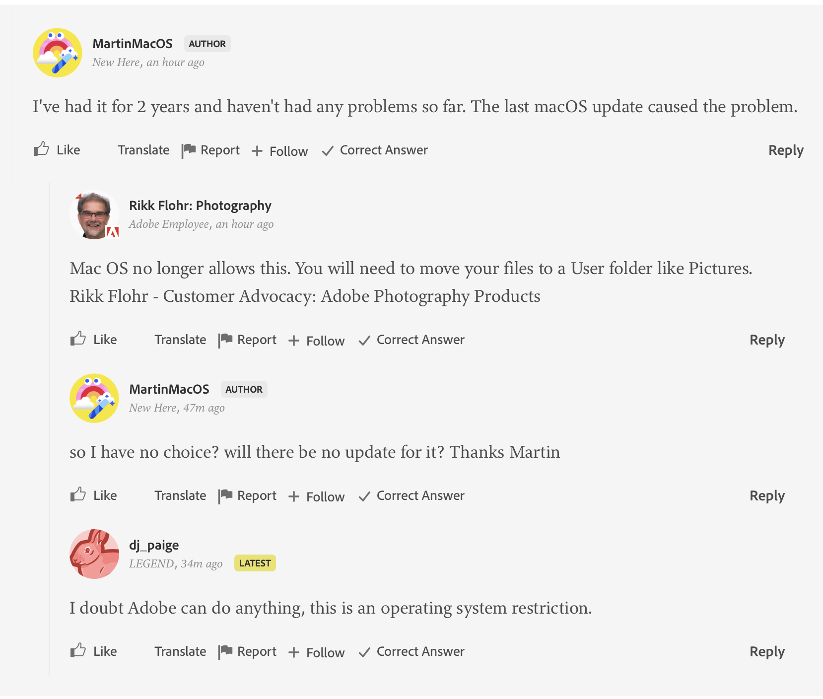 I wrote to Adobe support, where they wrote that it was a macOS problem. Can you please advise me what.