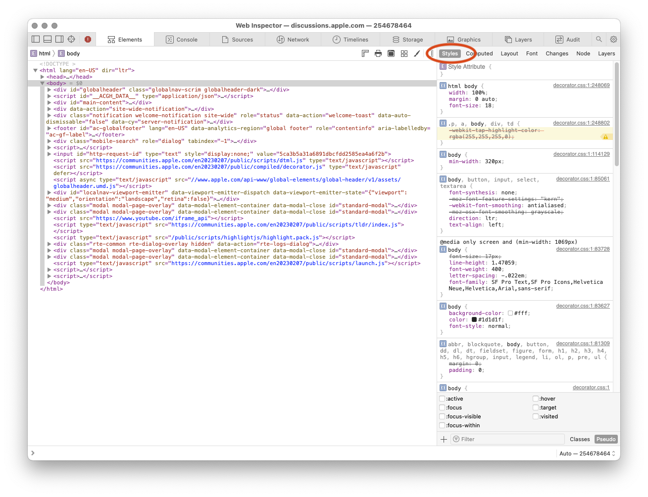 Safari has one, but it has a third column that I don't need - it shows Font etc, but that's all in the CSS.