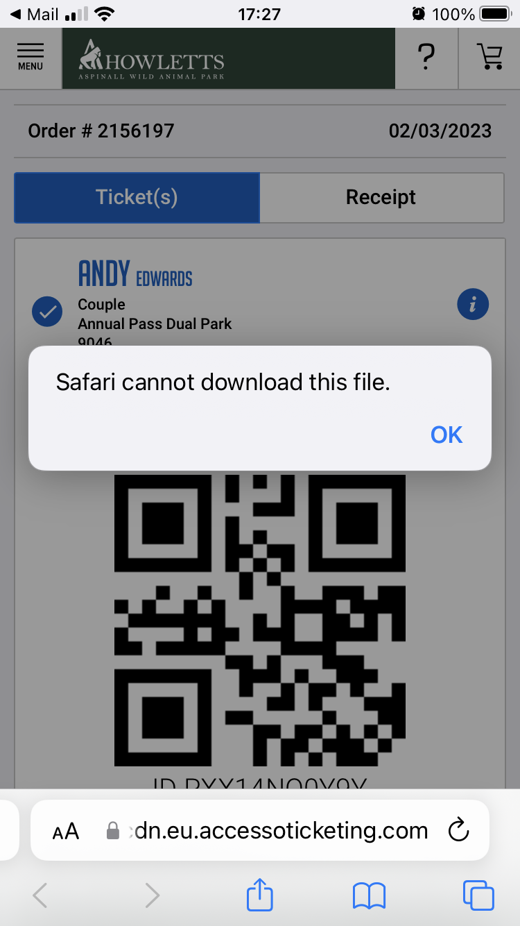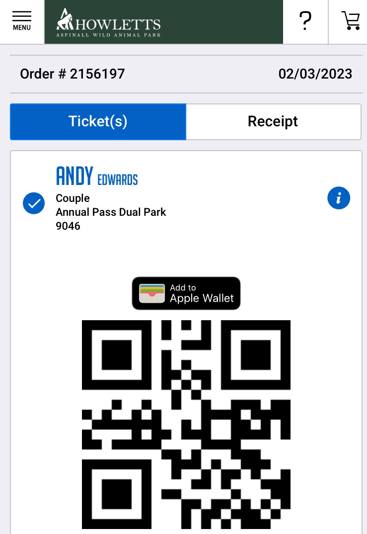 Additionally, there's no information on the vendors website that states passes or tickets can be added to Apple Wallet. Howletts Wild Animal Park - Book Your Tickets , nor on the FAQ page here: Frequently Asked Questions. Is this the only vendor you're having an issue with?