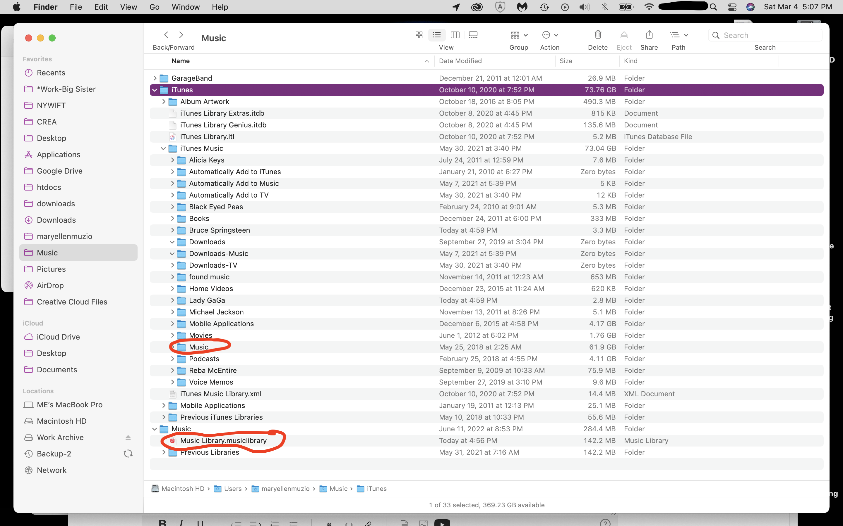 So is the Music folder within iTunes the current library, or is it Music Library.musiclibrary, within the Music folder (both of them being within the main Music folder)??