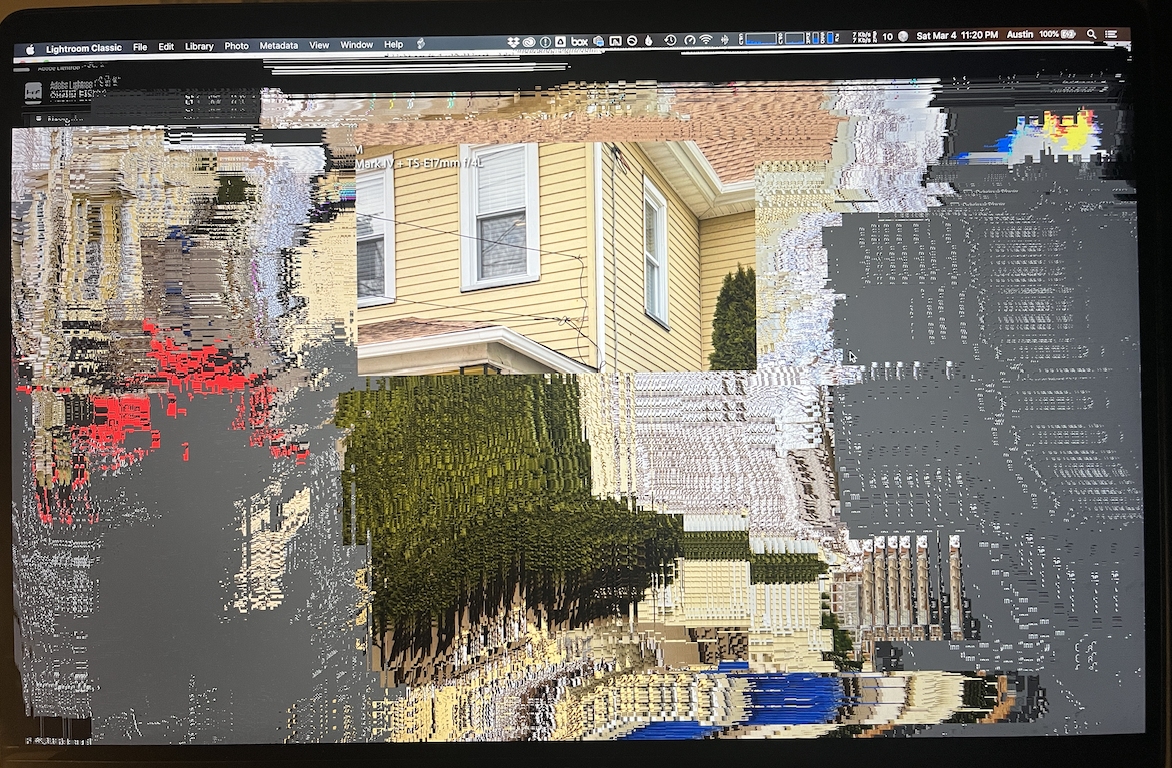 I then reinstalled the OS thinking it might have been an OS issue. After that process concluded I started up the laptop in normal boot mode and did not plug in the external monitor. I opened up Lightroom Classic and it started to glitch and freeze again: