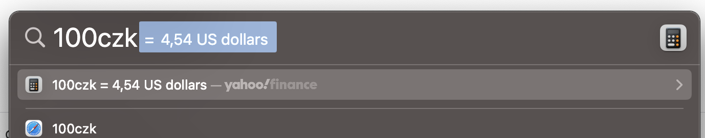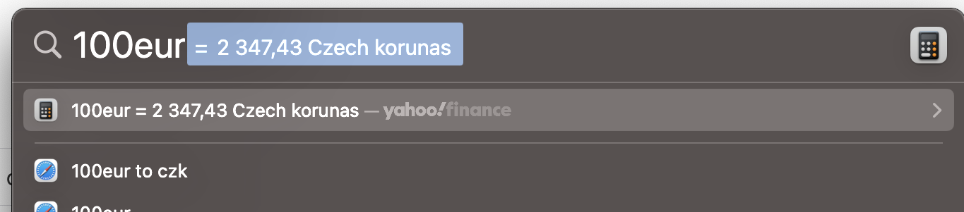 Default currency in Spotlight