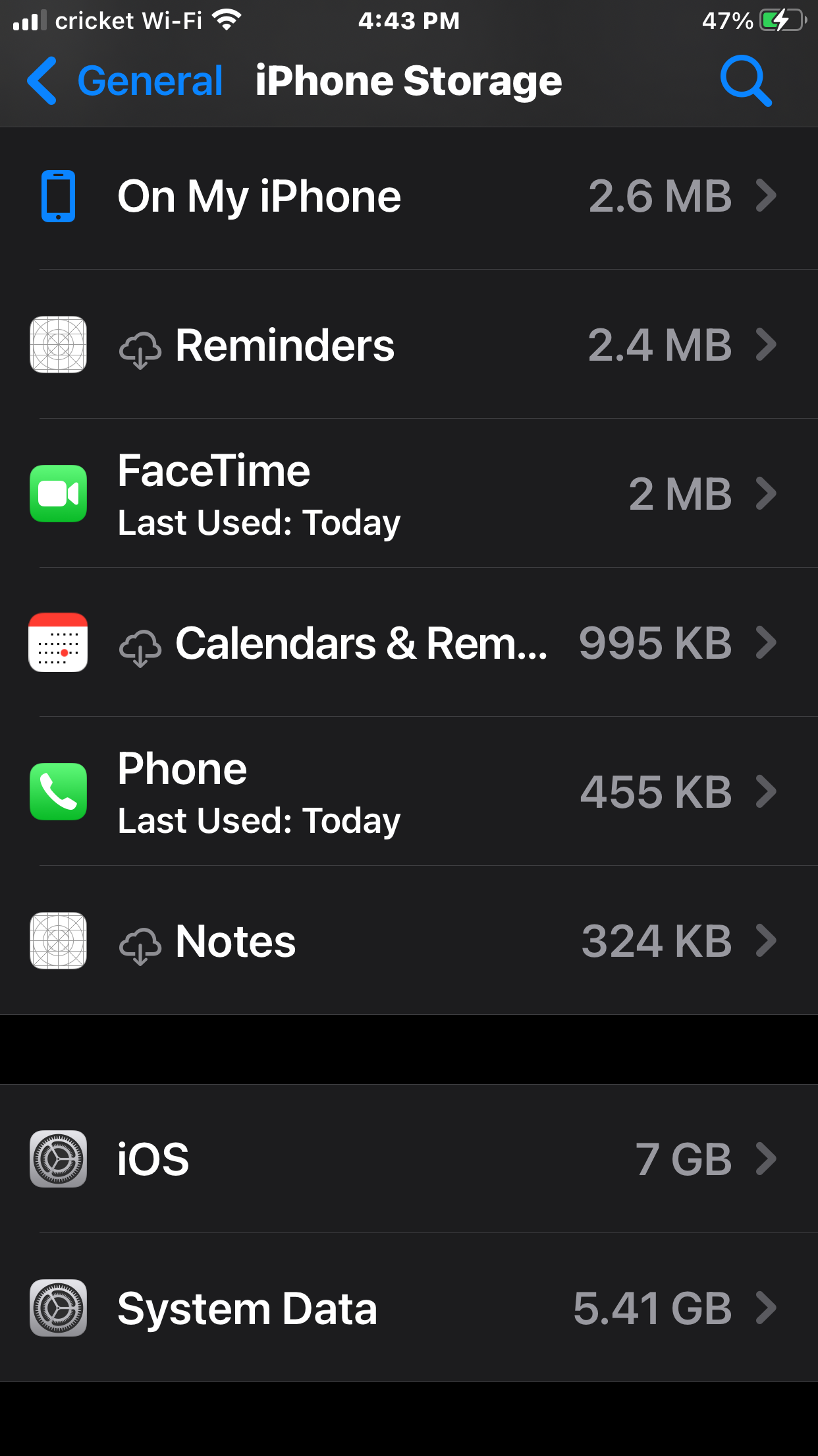 i have only five apps no pics and the iOS is taking up almost half my storage