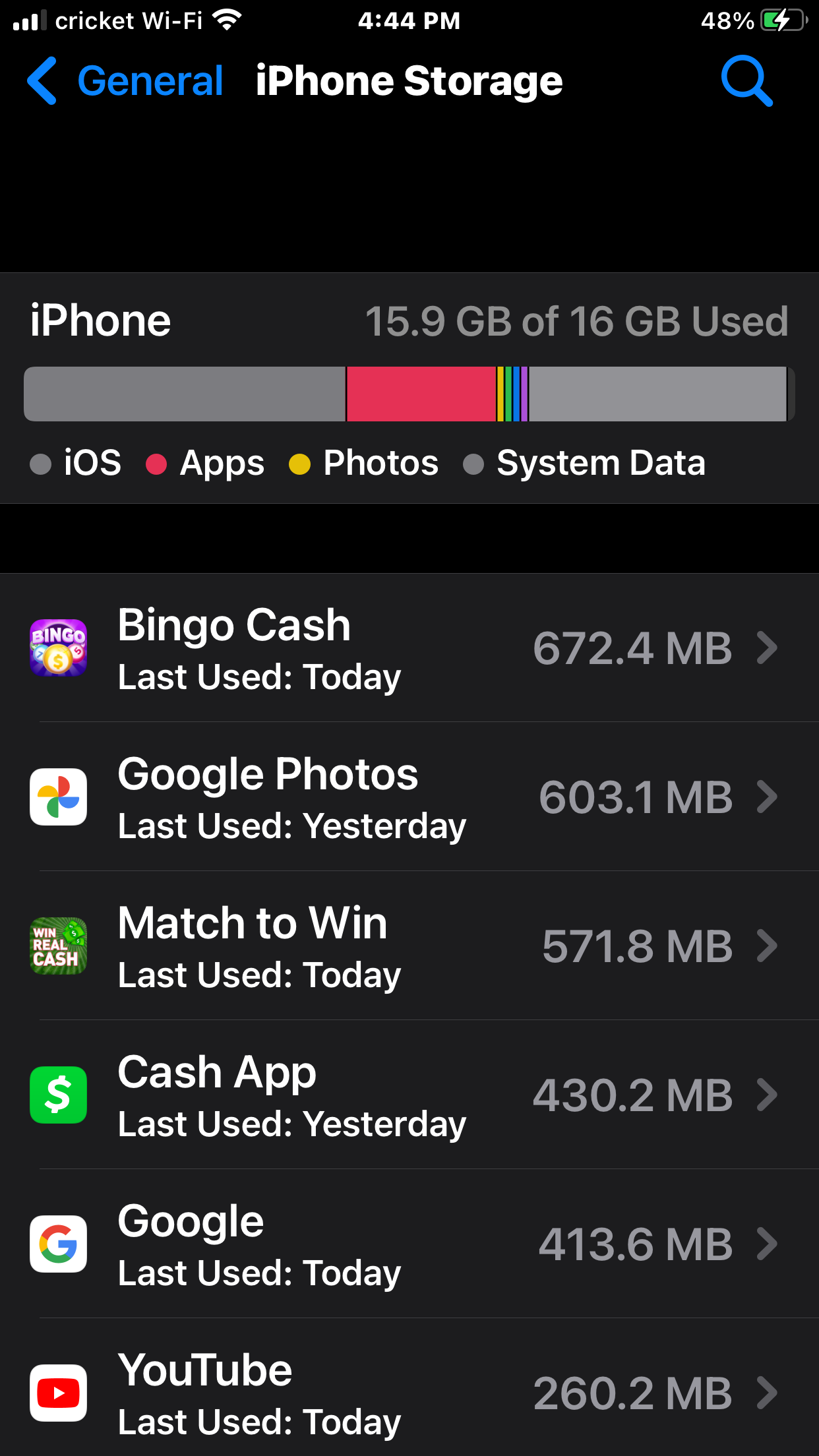 How do I delete iOS storage on my 6 plus