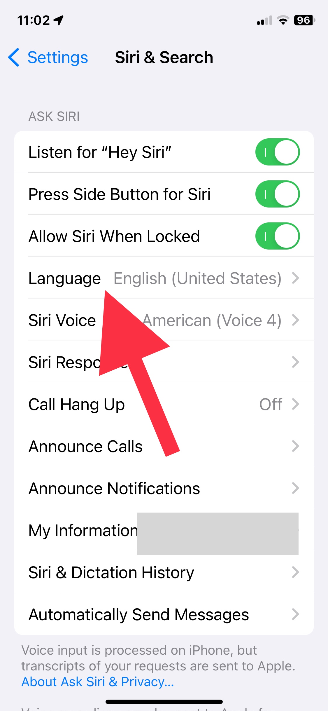 I do not see any Language option under Siri and Search. How can I make it appear?