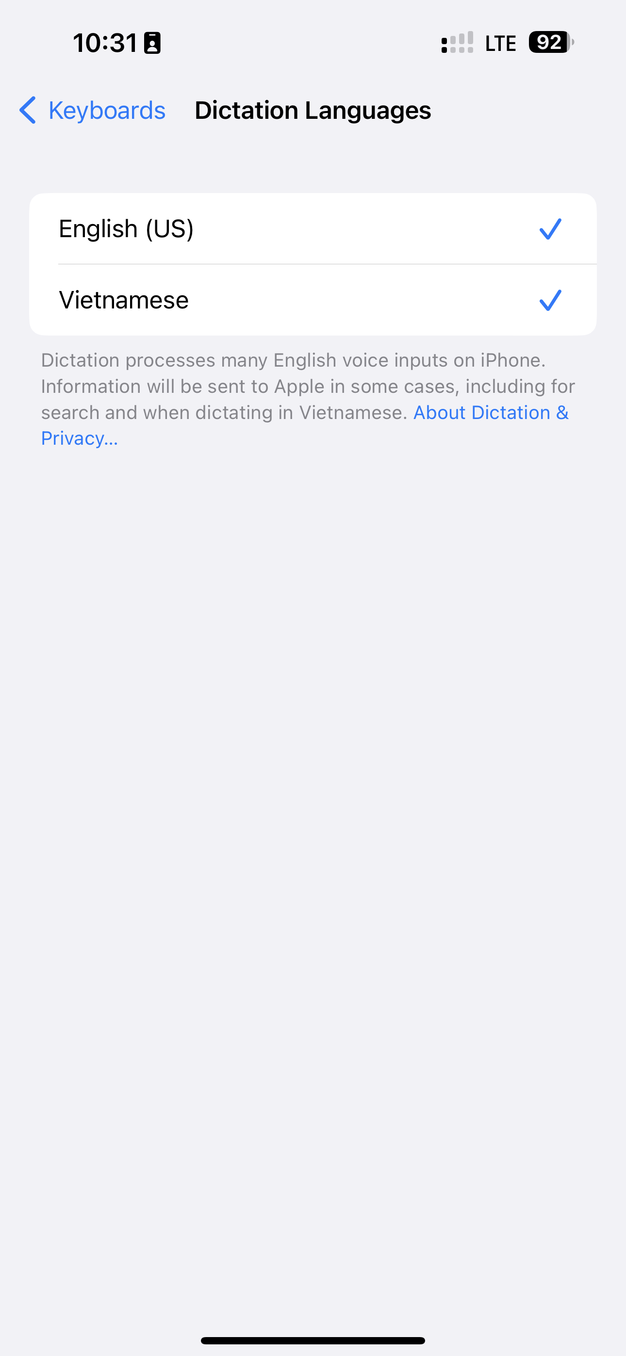 Whenever I try to dictate in English, it works just fine. But when I swipe up from the bottom to choose Dictation in Vietnamese, it still tries to dictate Vietnamese in English, which sounds absurd. And by the way, Vietnamese dictation in Vietnamese still works on my iPhone.