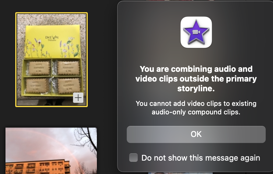 Others have posted on this board with the same problem. I don't know what could be causing it. iMovie does not have a compound clips feature, unlike Final Cut Pro. You might try contacting Apple Support by clicking on the Support item in the upper right hand corner of this forum's screen and navigating to a place where you can enter your phone number. It might be that you will need to upgrade your operating system, but I don't know. Deleting preferences and/or redownloading iMovie has not worked for others.
