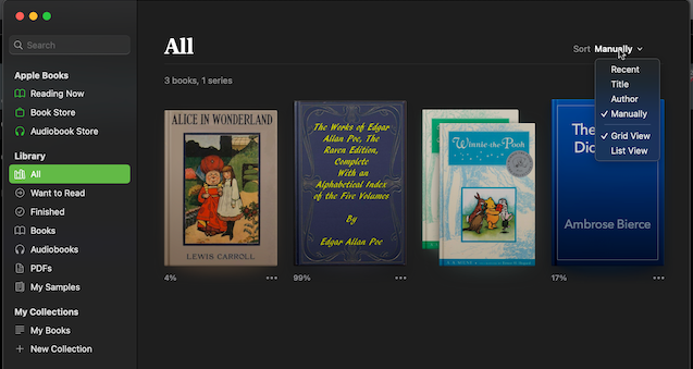 Here an example that I cannot do on App Books in Ventura: sort by Collection