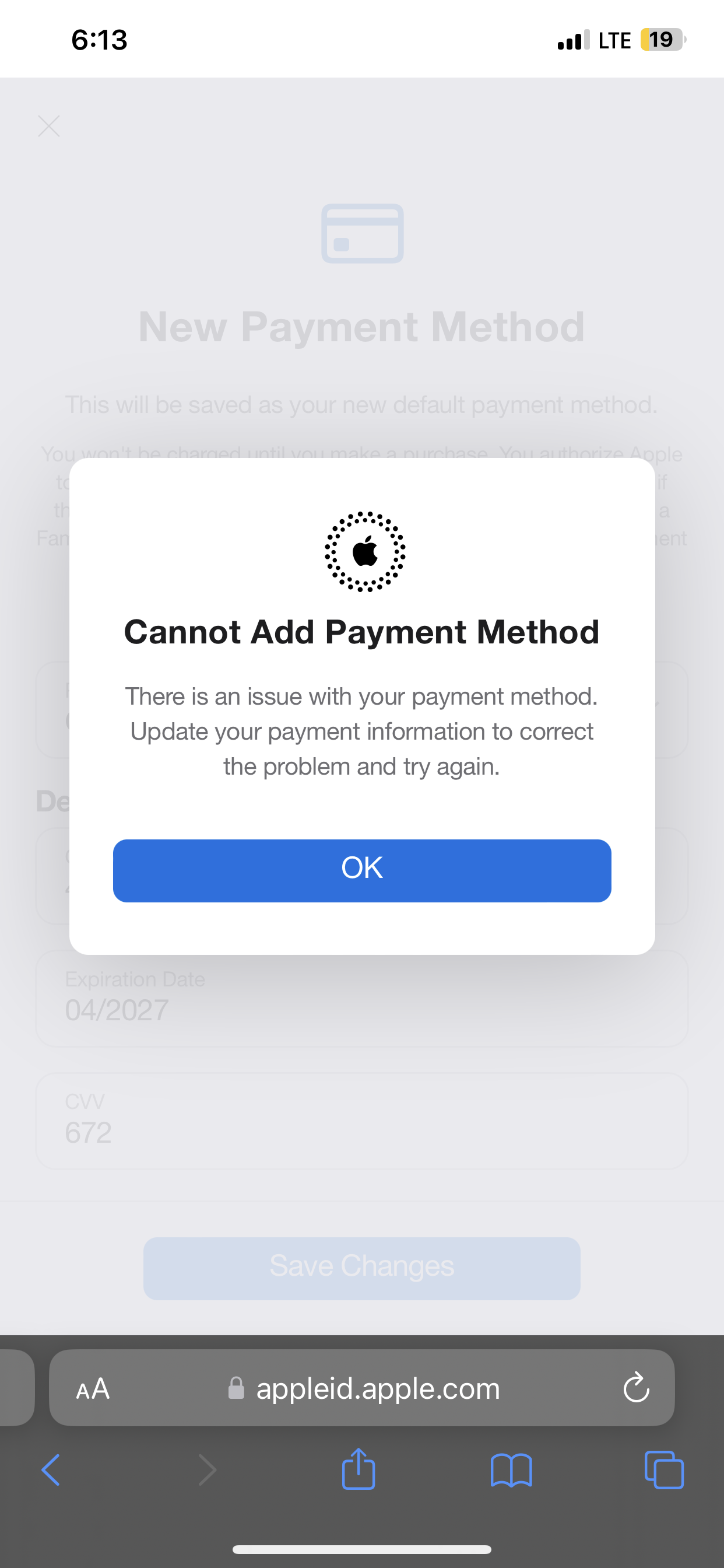Every time I update my payment method I’m being told it’s not valid. My card is valid. There’s money on it. I can’t update apps, get new apps etc because I keep getting the billing error.