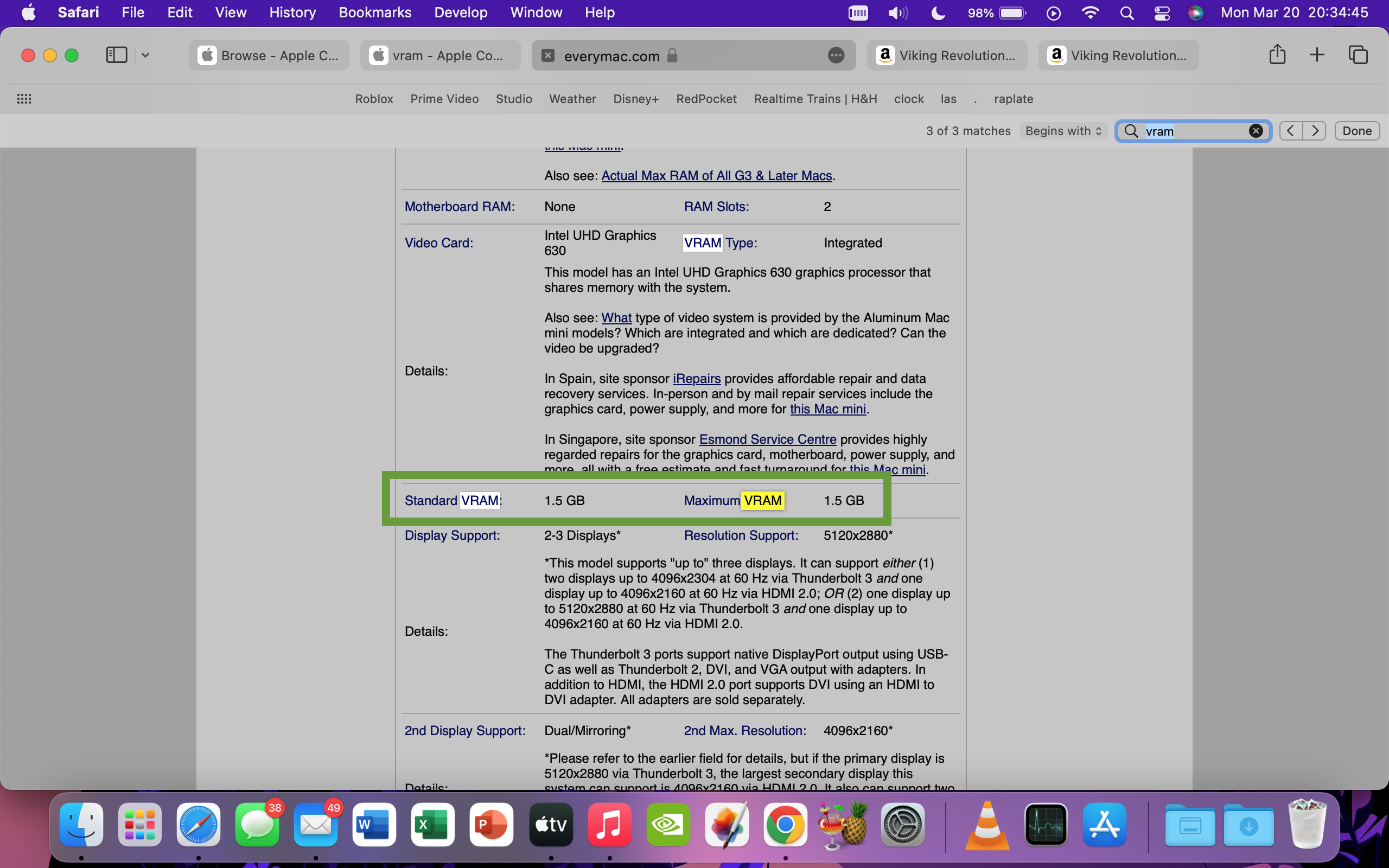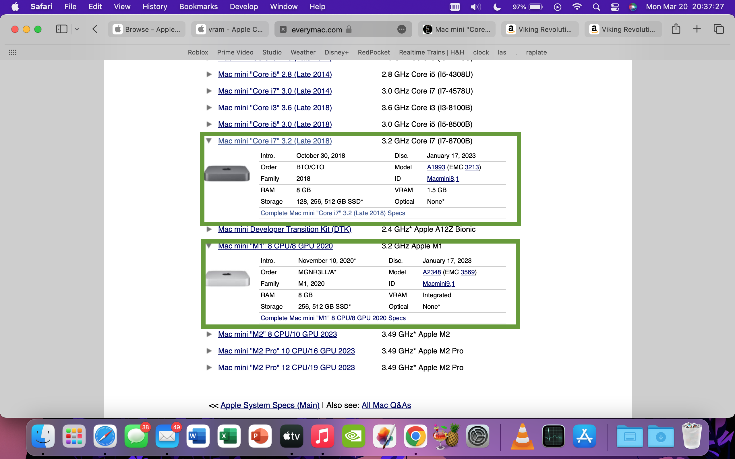I also looked into what Mac mini's have more than 2GB of ram, assuming newer models. The next refresh of the Mac mini came in 2020 with the M1 chip, which will be overall faster than Intel. (See picture for specs.)