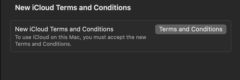 The pop up came out yesterday. System continues to ask to accept terms and conditions. I accepted many times, its still show up with the same prompt. I try to restart computer, did not help. This annoying notification looks like stack. Im using Ventura 13.2.1