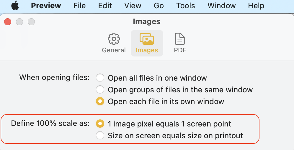 Logged into Terminal to make a change to Preview's Scaling as defaults write com.apple.Preview PVImagePrintingScaleMode -bool FALSE