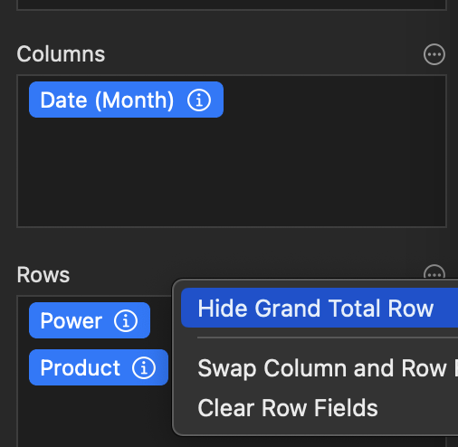 Hi, I am trying to remove the subtotal lines from a simple pivot table in Numbers. Any ideas how I can do this.