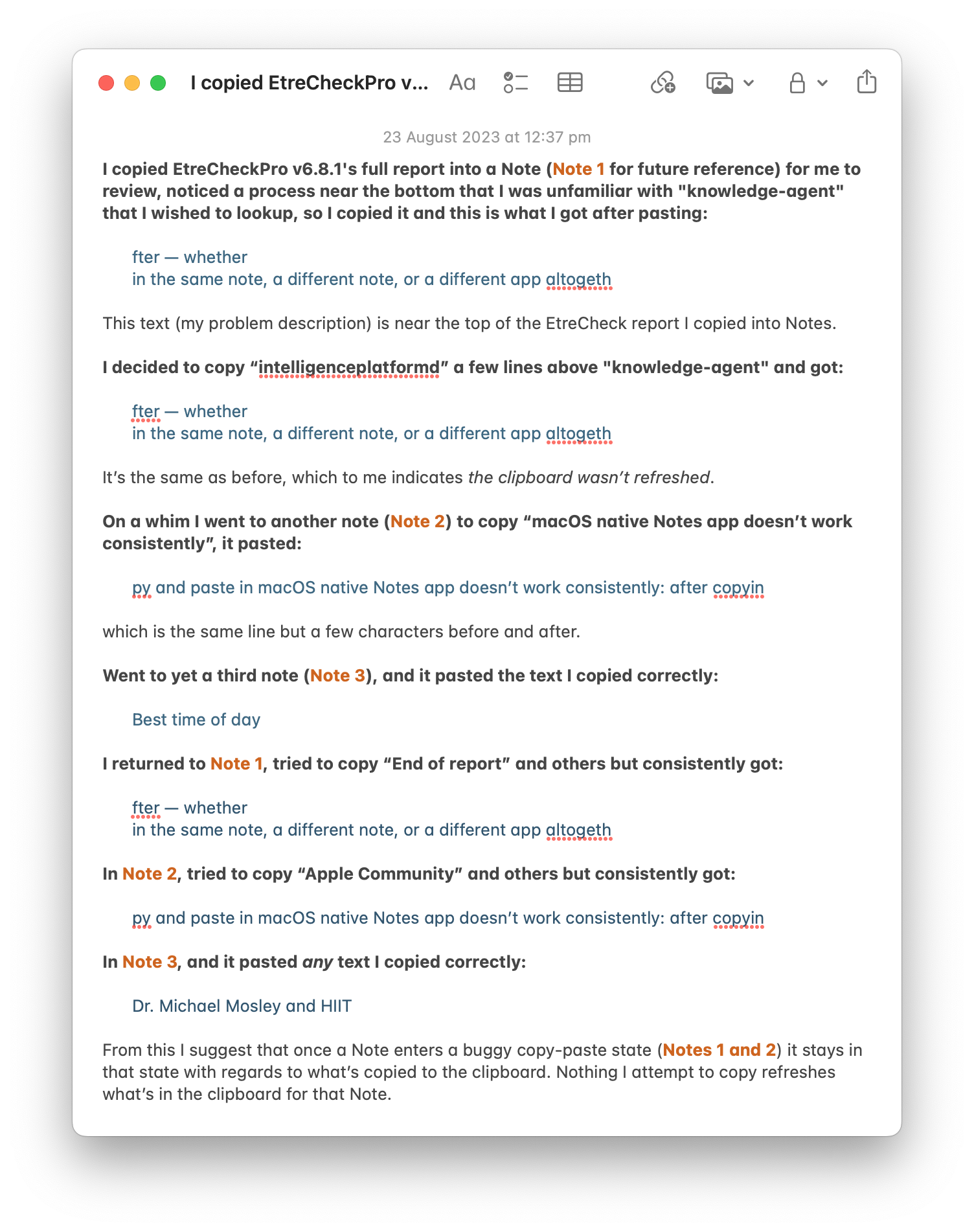 Like many others, this copy-and-paste issue in Notes has dogged me over the years, likely before 2019 when tusken_ryder reported Notes, copy paste doesn't work - Apple Community ("Me too'd" 990+ times), and followed me through at least 4 versions of macOS (now on Ventura 13.5) and two Macs (2015 MBP, 2020 M1 MBP).