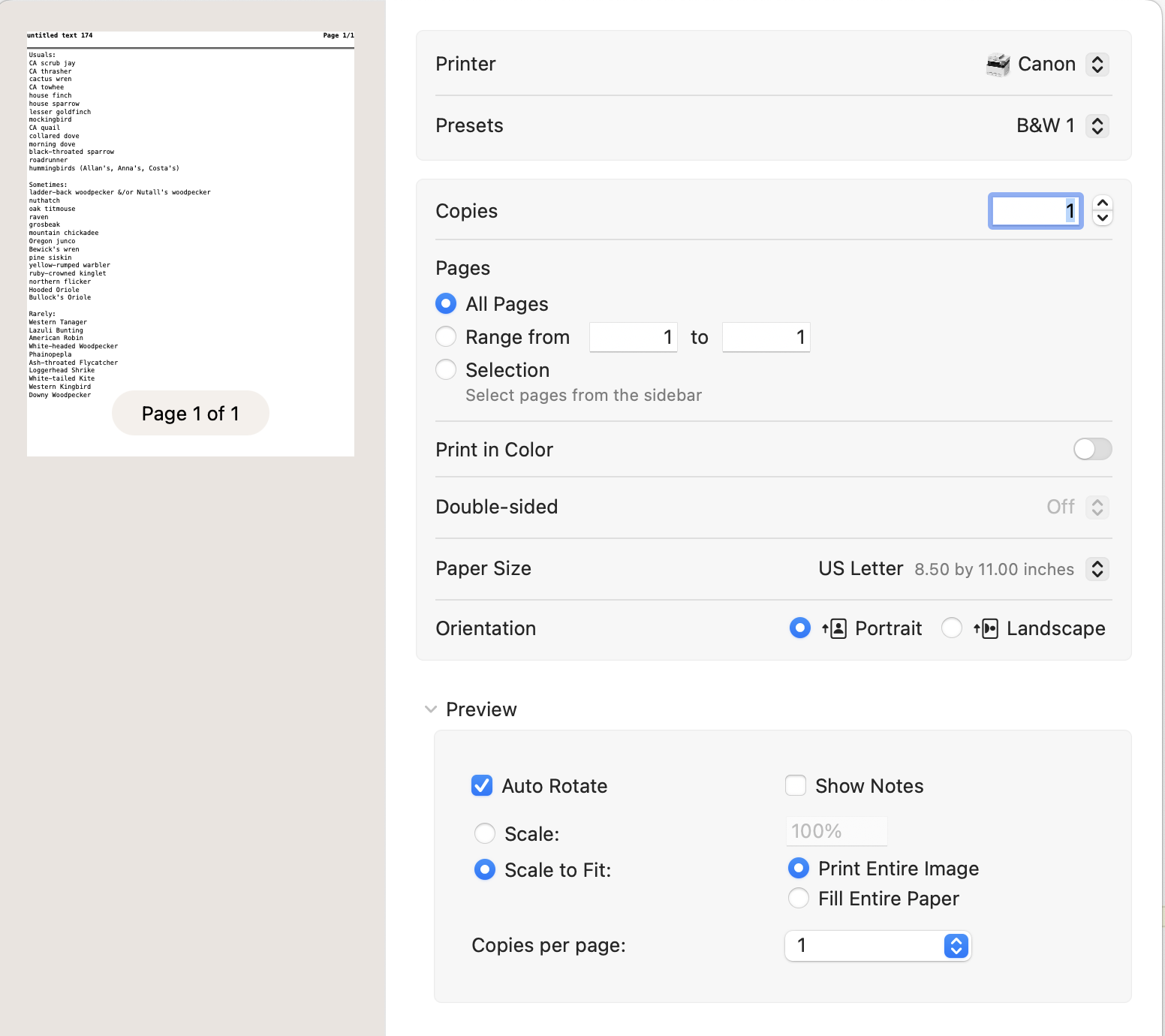 If I try to print a PDF and it's larger than the paper size, I used to be able to select "Scale to fit" and the image would shrink to fit into the chosen paper size. This no longer works; the scale remains at 100% and can only be changed manually (by typing in another number). Neither "Print entire image" or "Fill entire paper" have any effect on the image in the print-preview window, nor on the resultant print out. I have attached a screenshot.