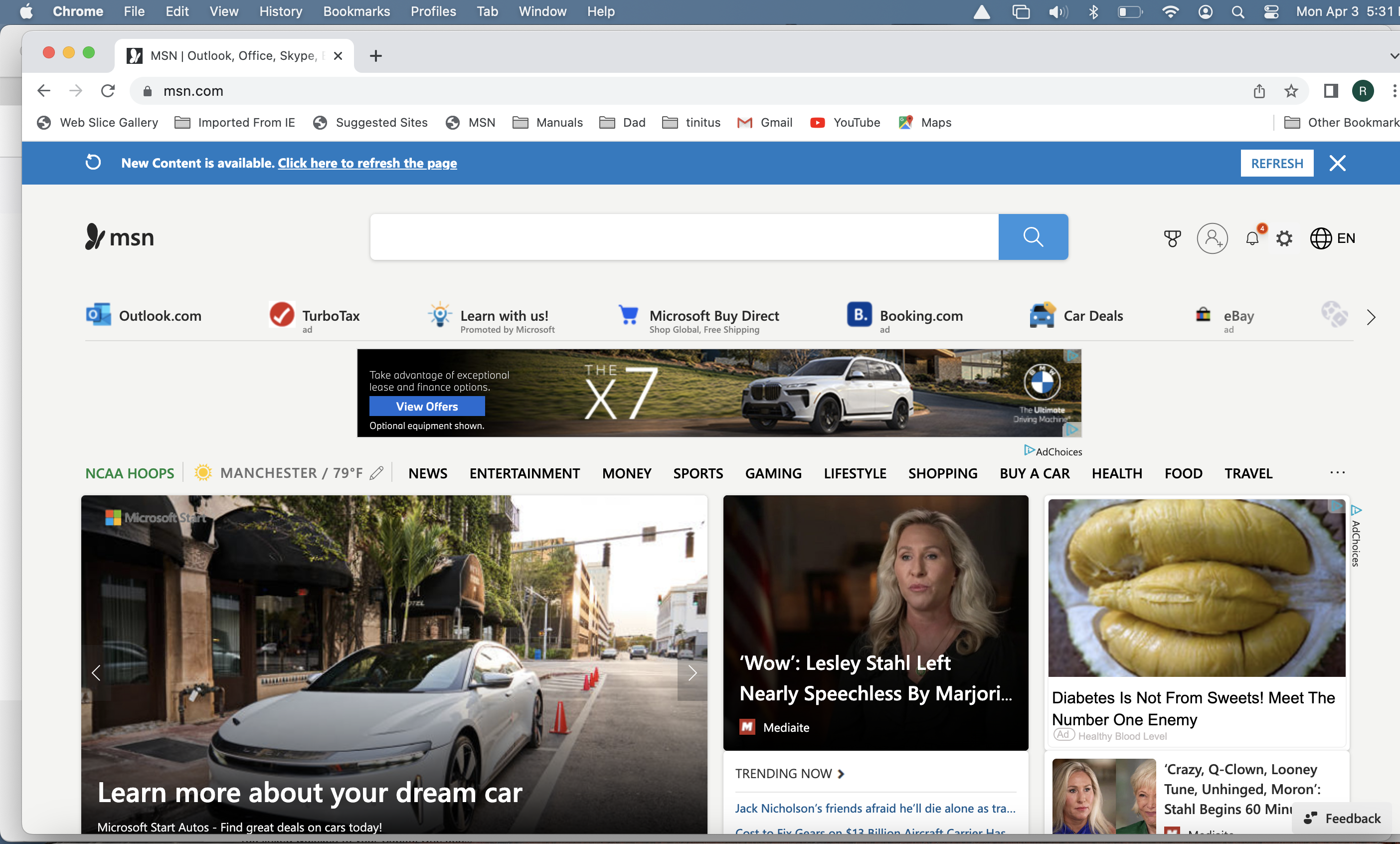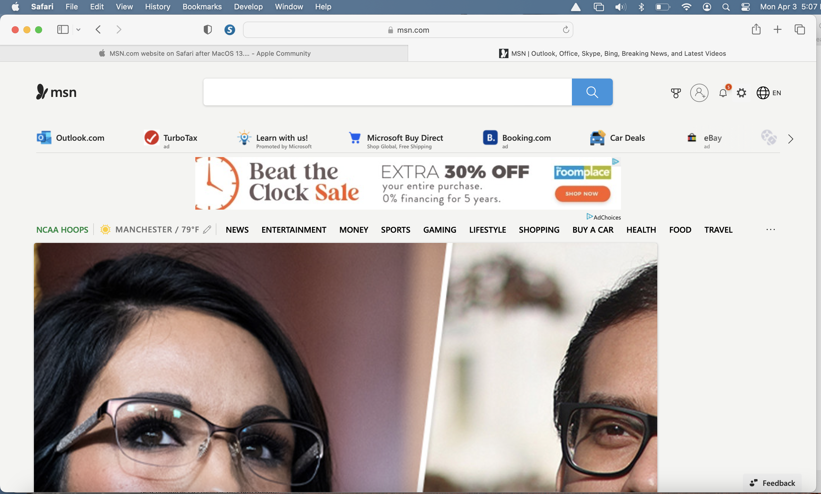 Since updating to MacOS 13.3 on my 13" M1 MacBook Pro yesterday, the MSN.com website looks bizarre in Safari (screenshot attached). The "butterfly" icon obscures most of the page, and when I click one of the rotating images at the top it dramatically enlarges - to the point of being grainy.