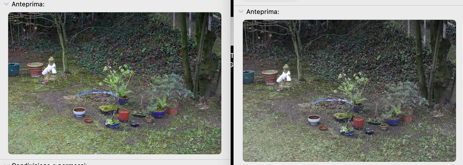 If I open both images with the Preview.app, both are equally oversaturated and match the left one above. If I import the picture in Photos.app it stay oversaturated. To get it appear "correctly" (e.g. as it does in Canon's own app "Digital Photo Professional" for instance) I have to open it with the RAWPower plugin and set the Vibrancy value to approx to -0.4. If at this stage I export a JPG version of the picture with "original color profile" set in the export dialog, I obtain a "correct" looking image with an sRGB IEC61966-2.1 profile associated...Rather weird. But the plot thickens further: I repeated the whole test with a CR2 Raw picture shot with a Canon EOS 70D, and guess what? The file shows consistently under all circumstances, not oversaturated at all, and by default it shows in Photos.app exactly the same as in Canon's own utility. All this happens to occur in spite of the color profile association which is exactly the same on CR2 files as with the CR3 file... I suspect that the problem is rooted at the RAW decoding/processing/interpretation done by Apple which is different by camera model, rather than by the sRGB / P3 discussion which was subject of the previous thread.