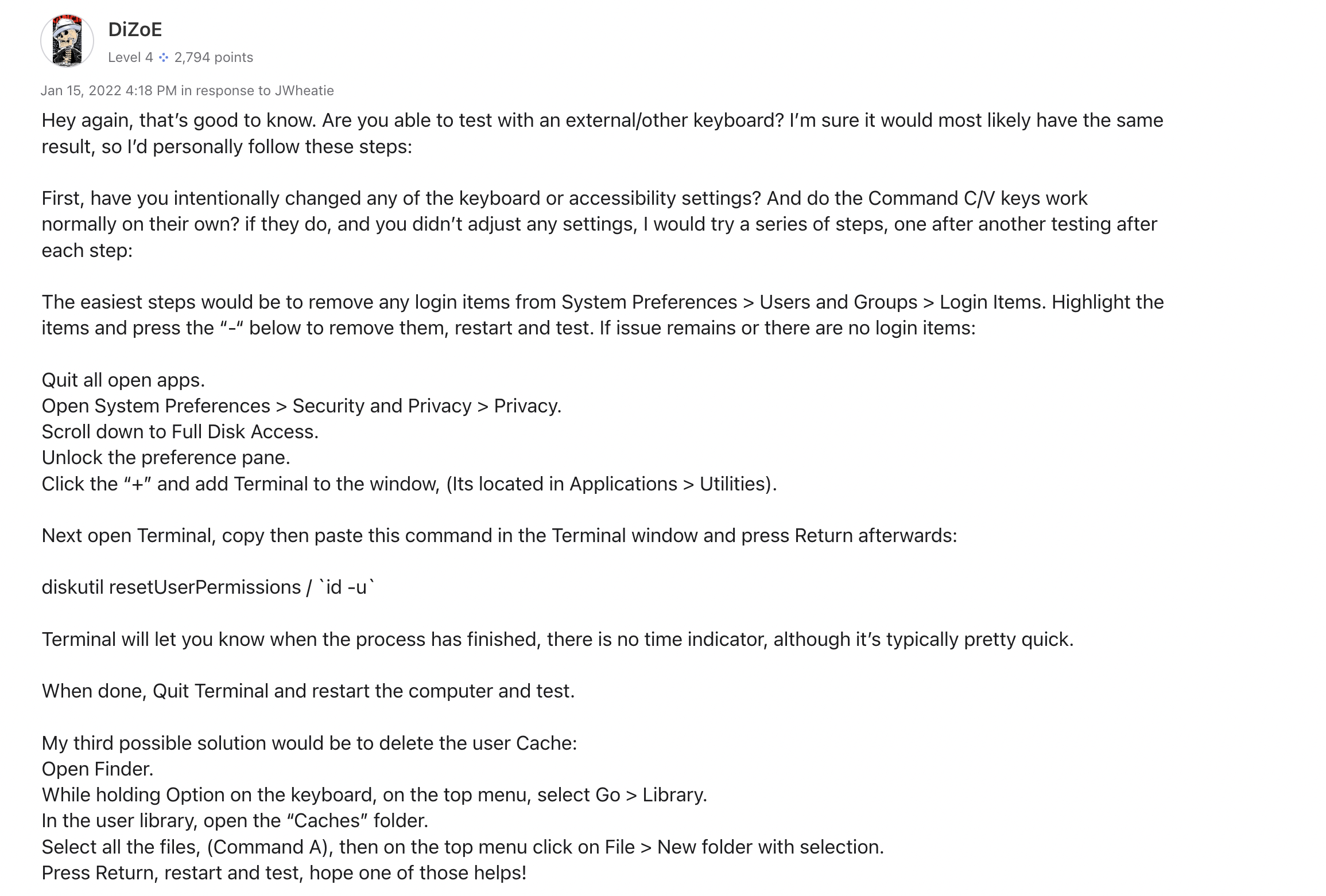 @dizoe I have a follow up question that I cannot reply to at this time so I included the image below. I didn't do any of the tests yet but I imagine it is the same issue because the keyboard short cuts appear to be working as when I hit command c to copy the edit dropdown at the top of screen highlights indicating it is copying. If I were to remove login items--well, I just don't think this is an option--my only login item is Dropbox where ALL my files are stored. Does this mean Dropbox is the reason I can't copy and paste? I'm preparing for a job interview presentation and still have to shower then drive 4 hours prior to a LONG day of interviews so I'll likely give up on copy/paste for today and just type all of this out. I love having a $4500 Macbook for less than a year with countless issues--insert sarcasm here.