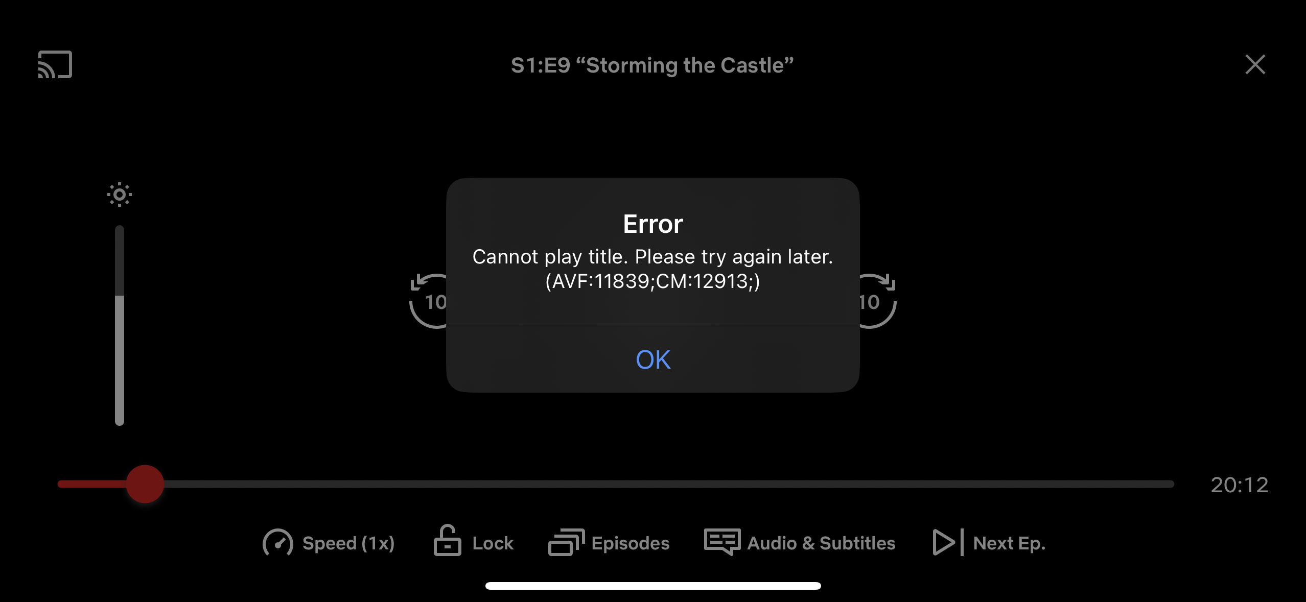 "Can’t stream anything on iPhone 14: Suddenly none of my streaming apps are working. Netflix and Hulu work for two seconds and give errors. Disney plus, HBO all give errors. YouTube gives errors too. Here are images. doesn’t work whether I’m on Wi-Fi or data."
