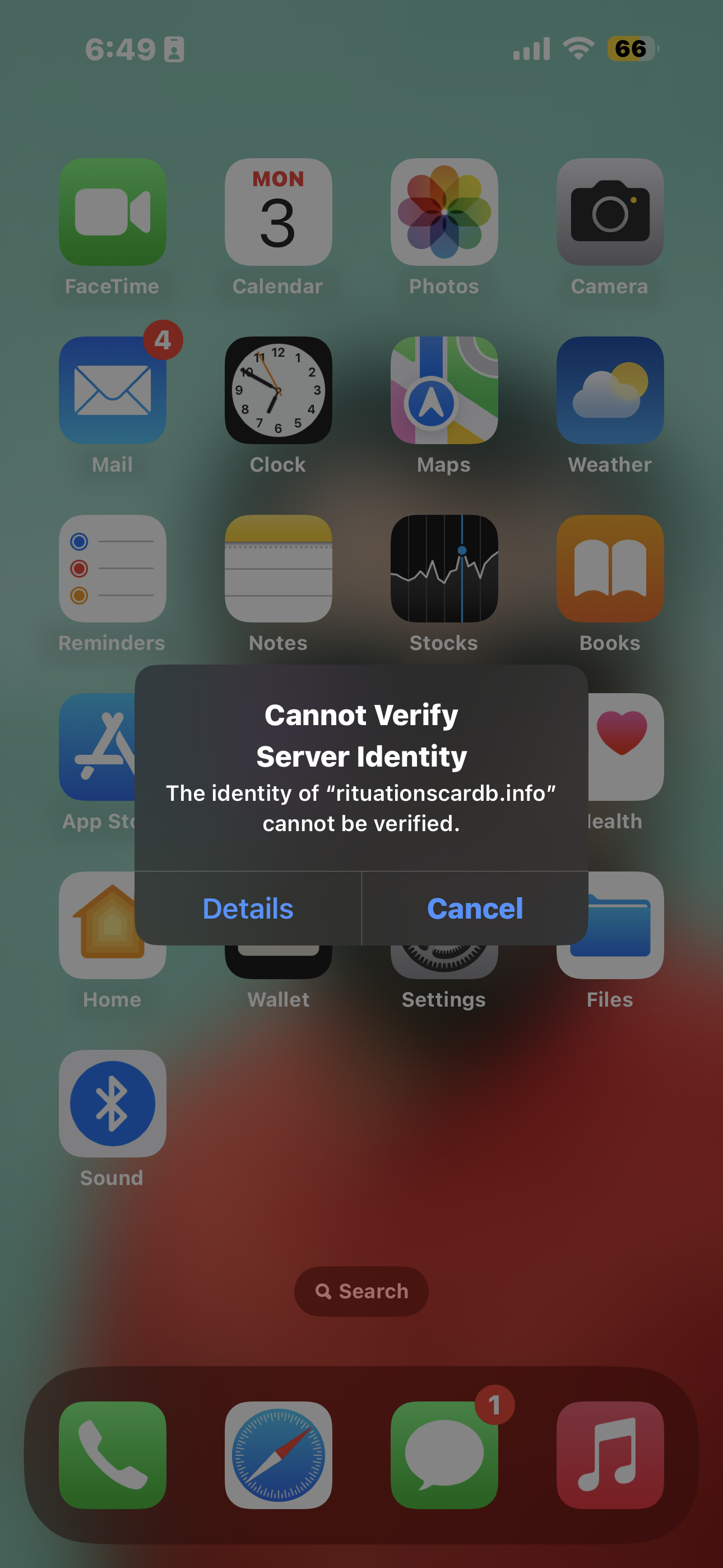 "rituationscardb.info cannot be verified."-this massage is given me every day. so give me the solution please.