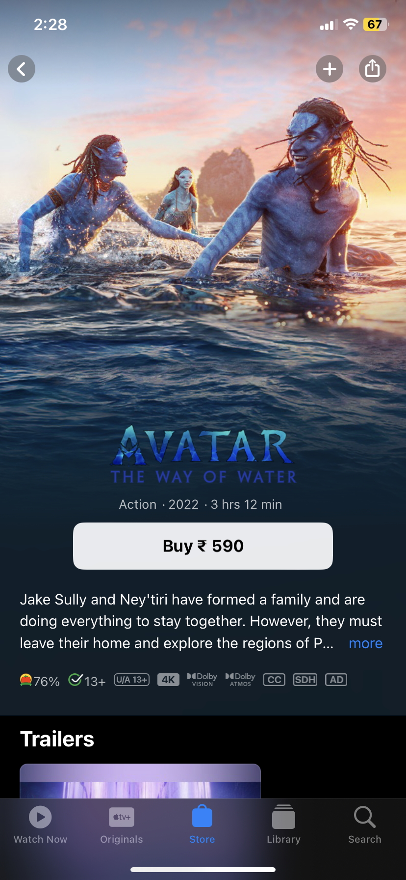 I recently purchased Avatar The Way of Water from Apple TV app to watch on my TV. It showed that the movie was in 4K Dolby Vision as shown below