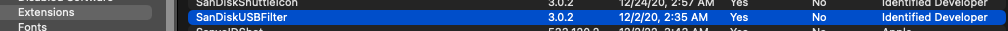 In this screenshot, you can see the SandDiskUSBFilter extension is there but not loaded which makes me wonder if I needed to install that at all. Maybe you can test that out if you like: