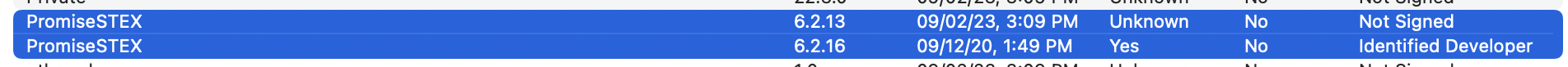 FYI don't be concerned if when looking at the extension list it says "No" under the loaded column. These extensions will load when you connect the drive. You can see in this screenshot the old version of the PromiseSTEX extension that came with the G-RAID Shuttle Driver above the newer version of the PromiseSTEX extension that came with the G-Speed Shuttle Driver and it is loaded because the drive is connected: