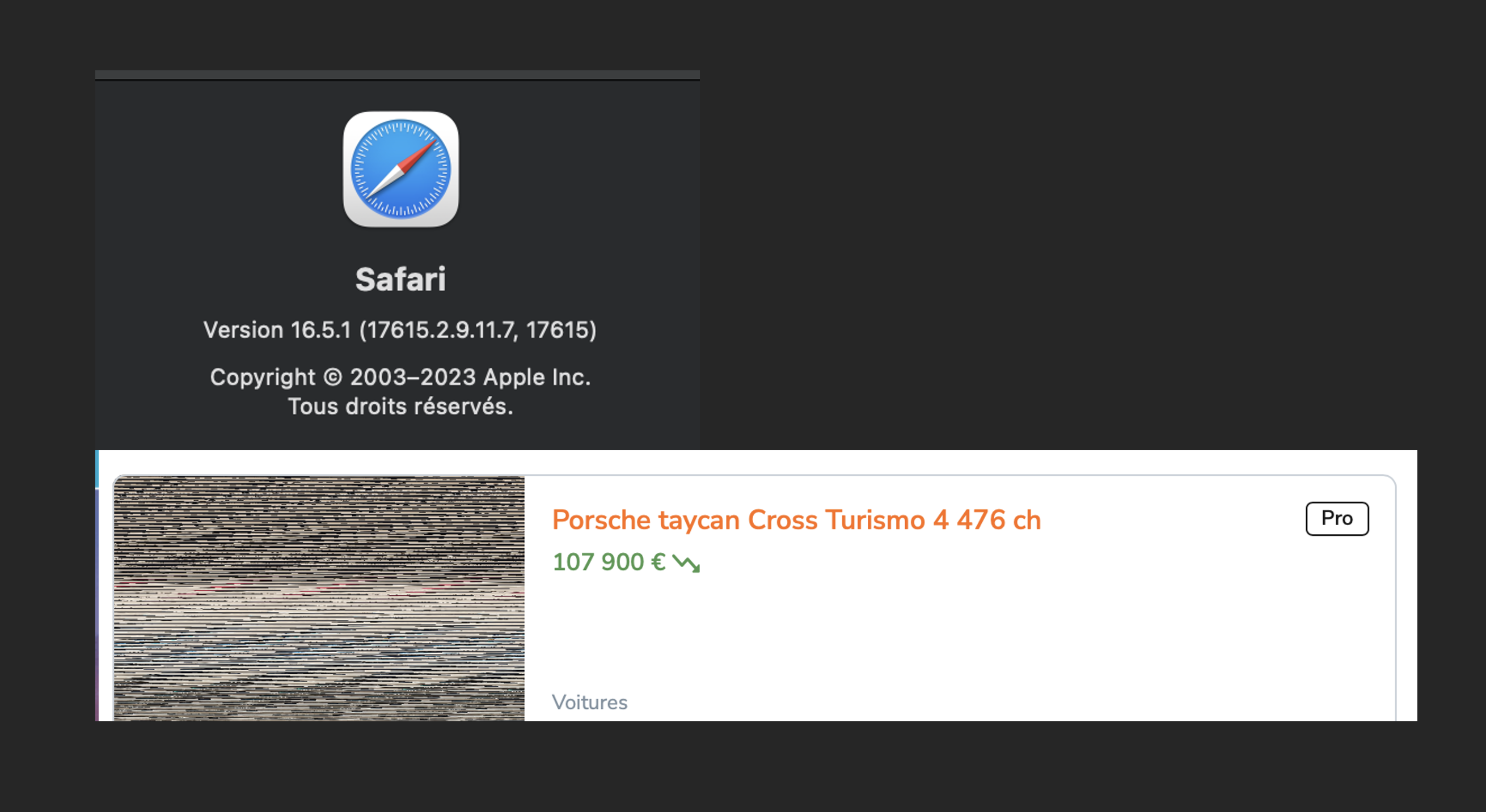 Trying now to run Chrome parallely for comparison, haven't seen it so far but on the other hand I've just started my own investigation of the problem. Haven't seen something like it running other apps or programs like Microsoft-365 or running Outlook-webmail, it occurs in normal website pages with pictures. My first thought was that there is a h/w failure with some graphics cars or a driver somewhere in macOS but i really looks like a problem with Safari. Anyone else out there with the same problem?