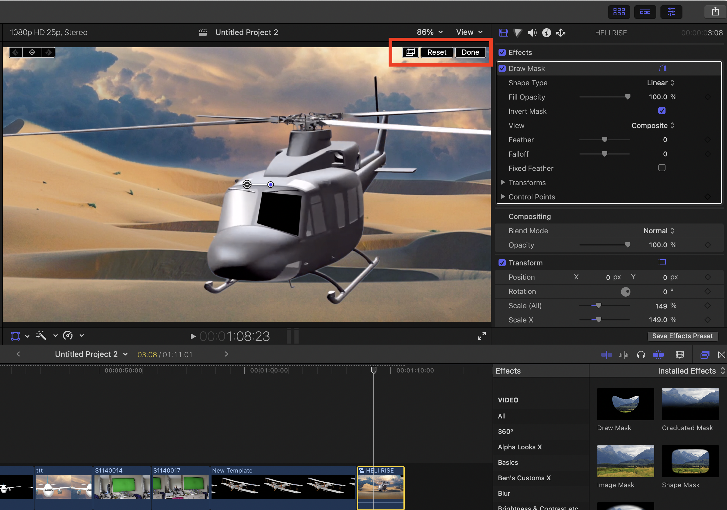 Now before anyone suggests there is something wrong with my iMac etc. let me add that the last time this happened was over 3 years ago (when I first used the Draw Mask) and since then the iMac has been wiped and a new OS and version of FCP X installed.