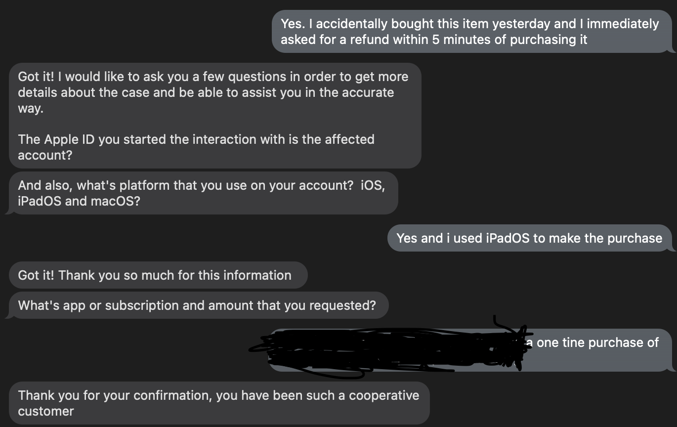 Hi guys. I recently accidentally bought a very expensive item in a game that I did not mean to buy and I reached out to Apple for a refund immediately. The customer service agent told me that my item was successfully refunded within 30 days of then. It has now been around a week since then and I asked another Apple customer service agent on an update regarding my refund. They told me that I am ineligible for a refund although I was previously told my refund took place and the current customer service agent placed a dispute for the refund. Currently I have no idea what to do as I am out a lot of money that I desperately need.