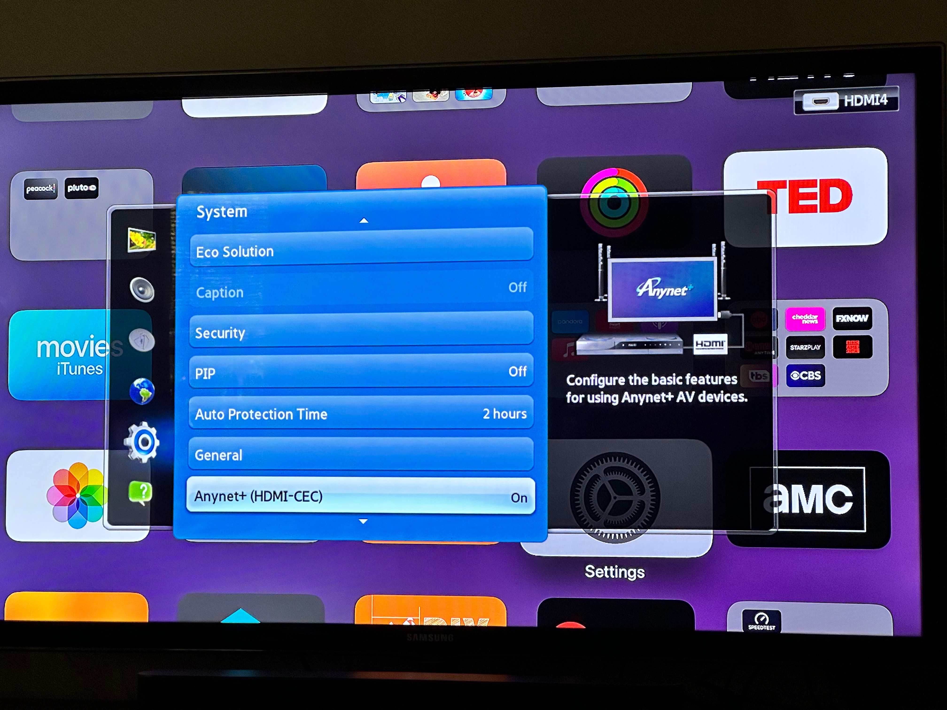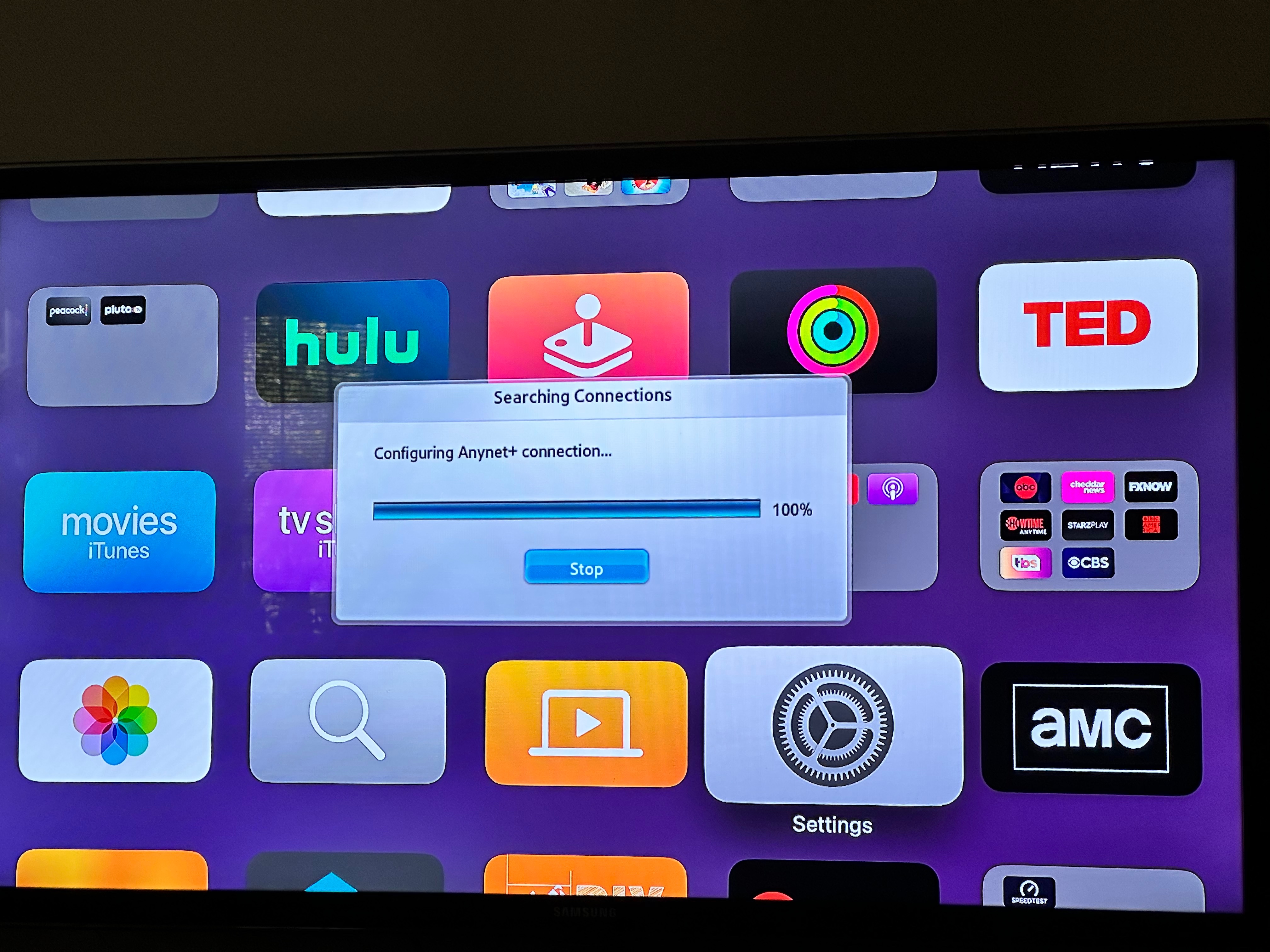 I did a hard reboot on both the television and the Apple TV and toggled the switch in each as well with no joy.