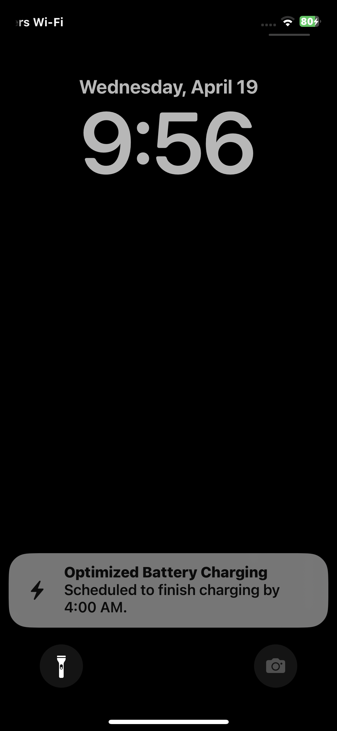 Notice my battery sitting at 80%. Today, I woke up over an hour earlier than normal, so the schedule instantly adjusted, setting the “fully charged time” to considerably earlier than normal.