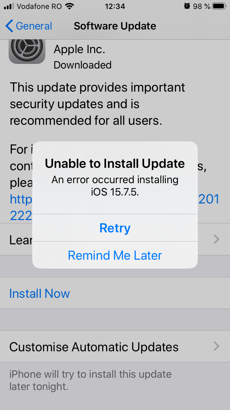 See If you can't update or restore your iPhone, iPad, or iPod touch - Apple Support. If you're trying to update over the air try using iTunes or Finder instead, or vice versa.
